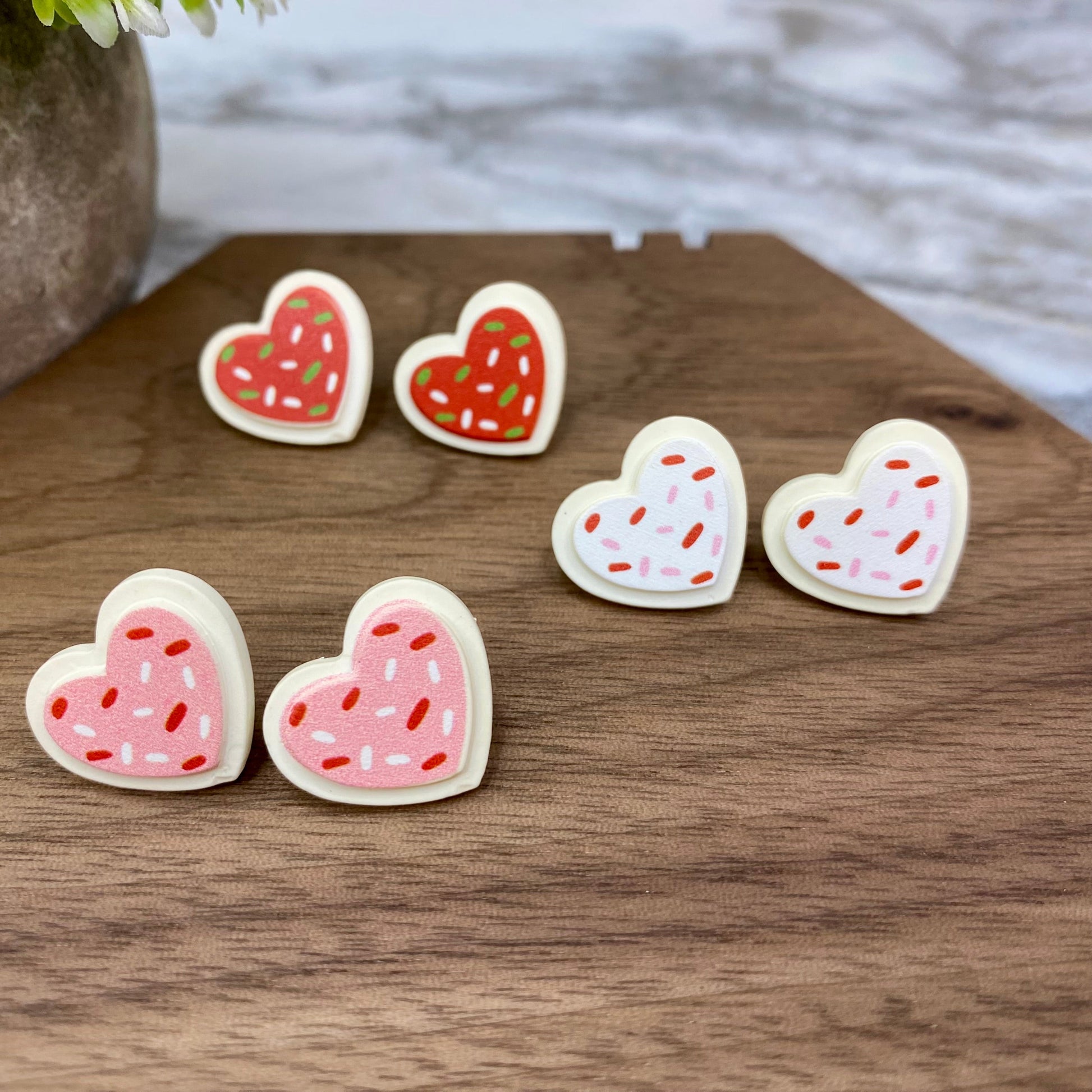 Acrylic Stud Earrings - Heart Cookies