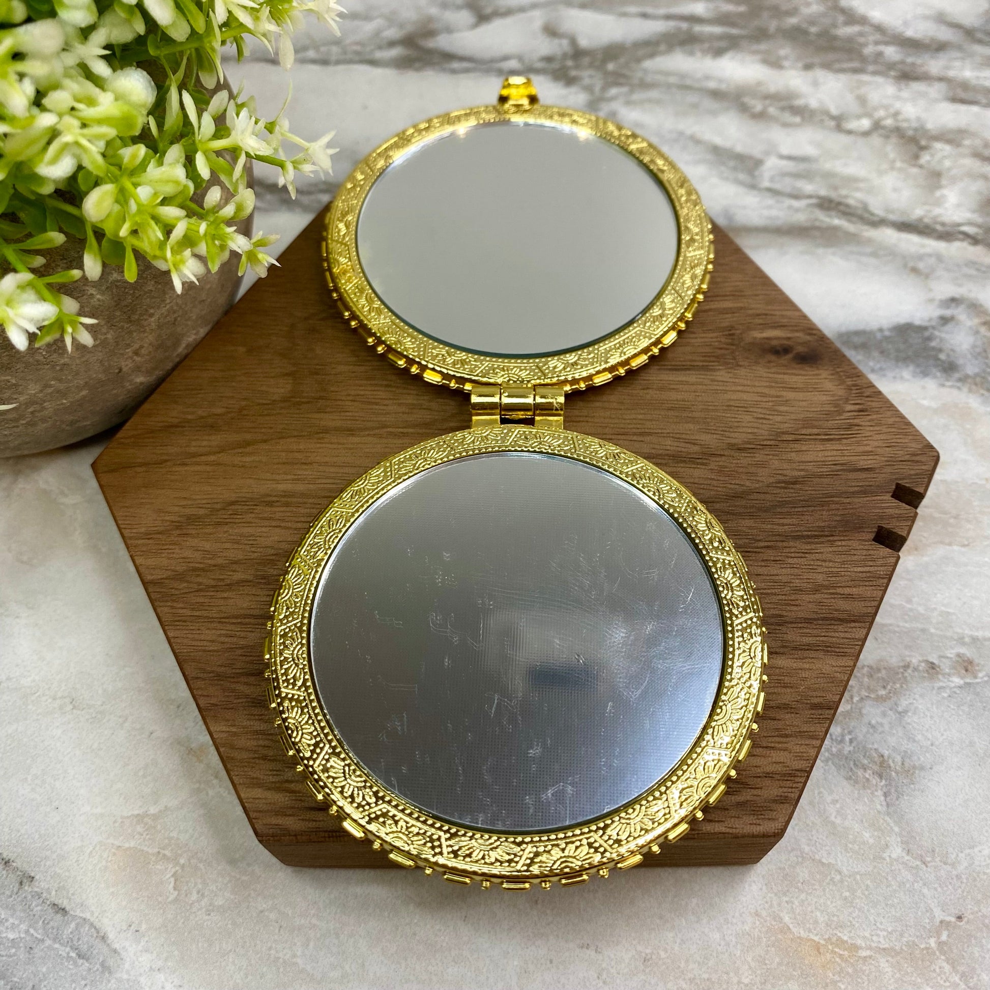 These awesome compact mirrors are perfect for travel, a purse, bathroom cabinet and so much more.
