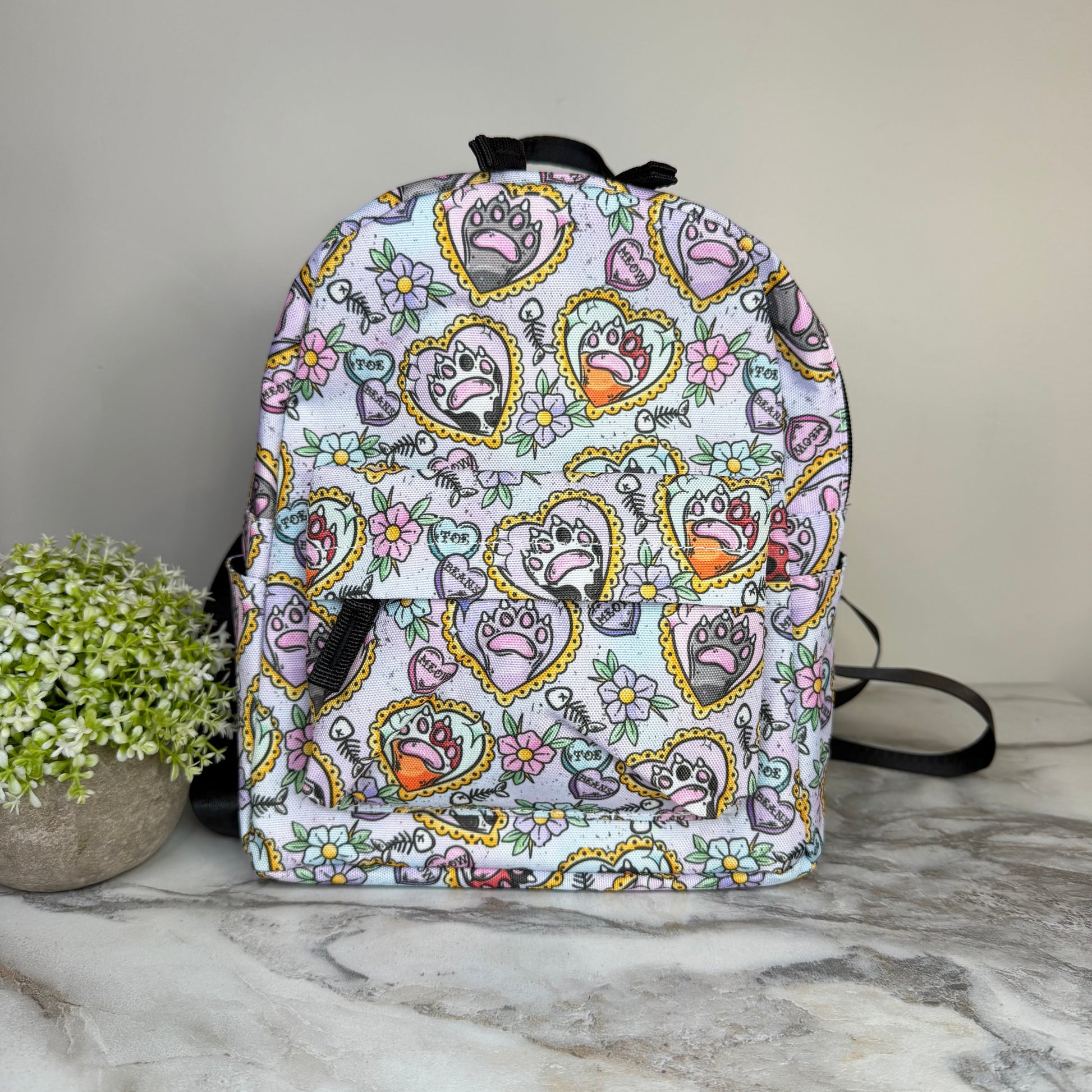 Mini Backpack - Cat Paw Meow on Pastel