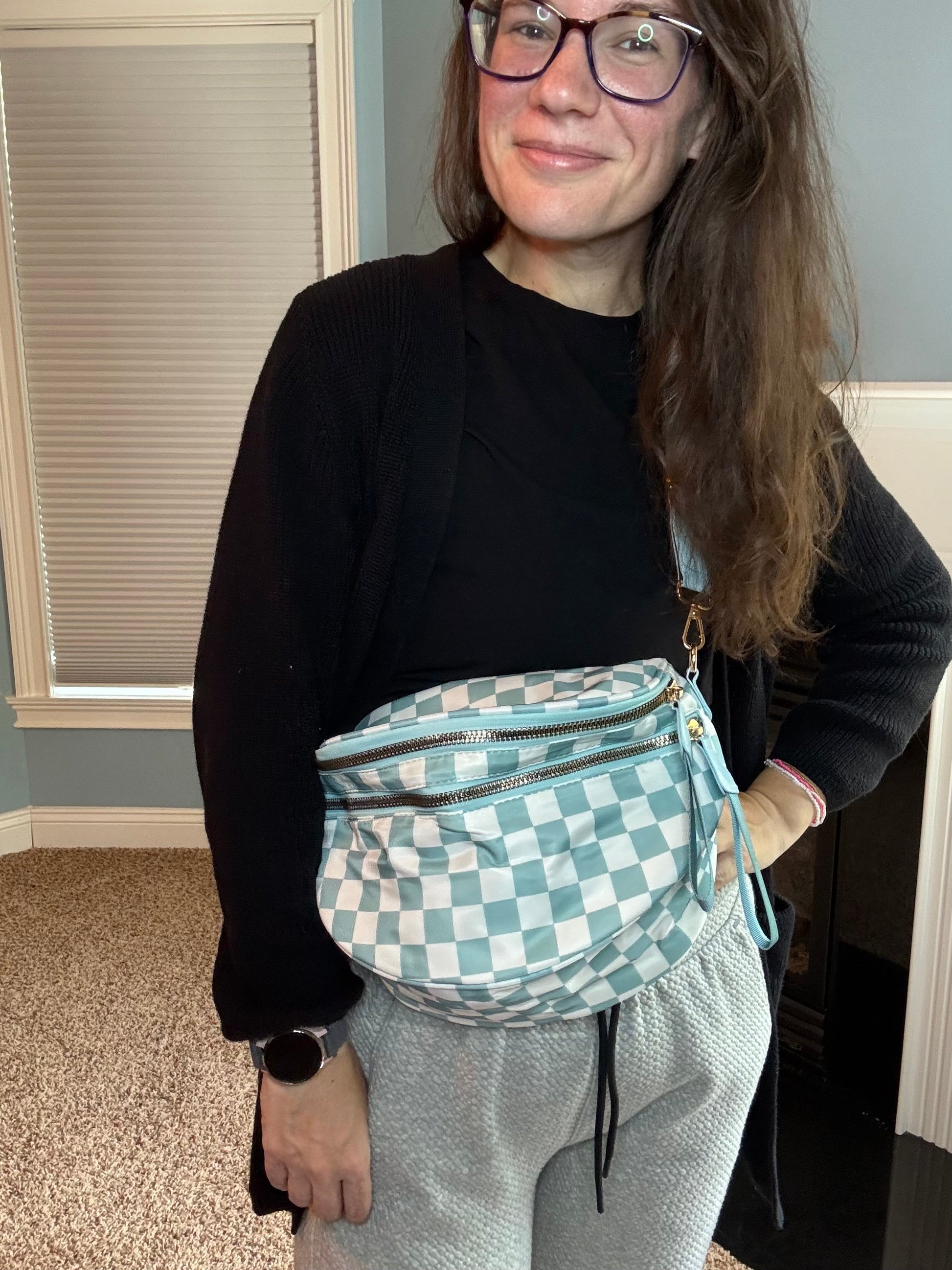 The Roni Nylon Crossbody - Checkered Aqua
