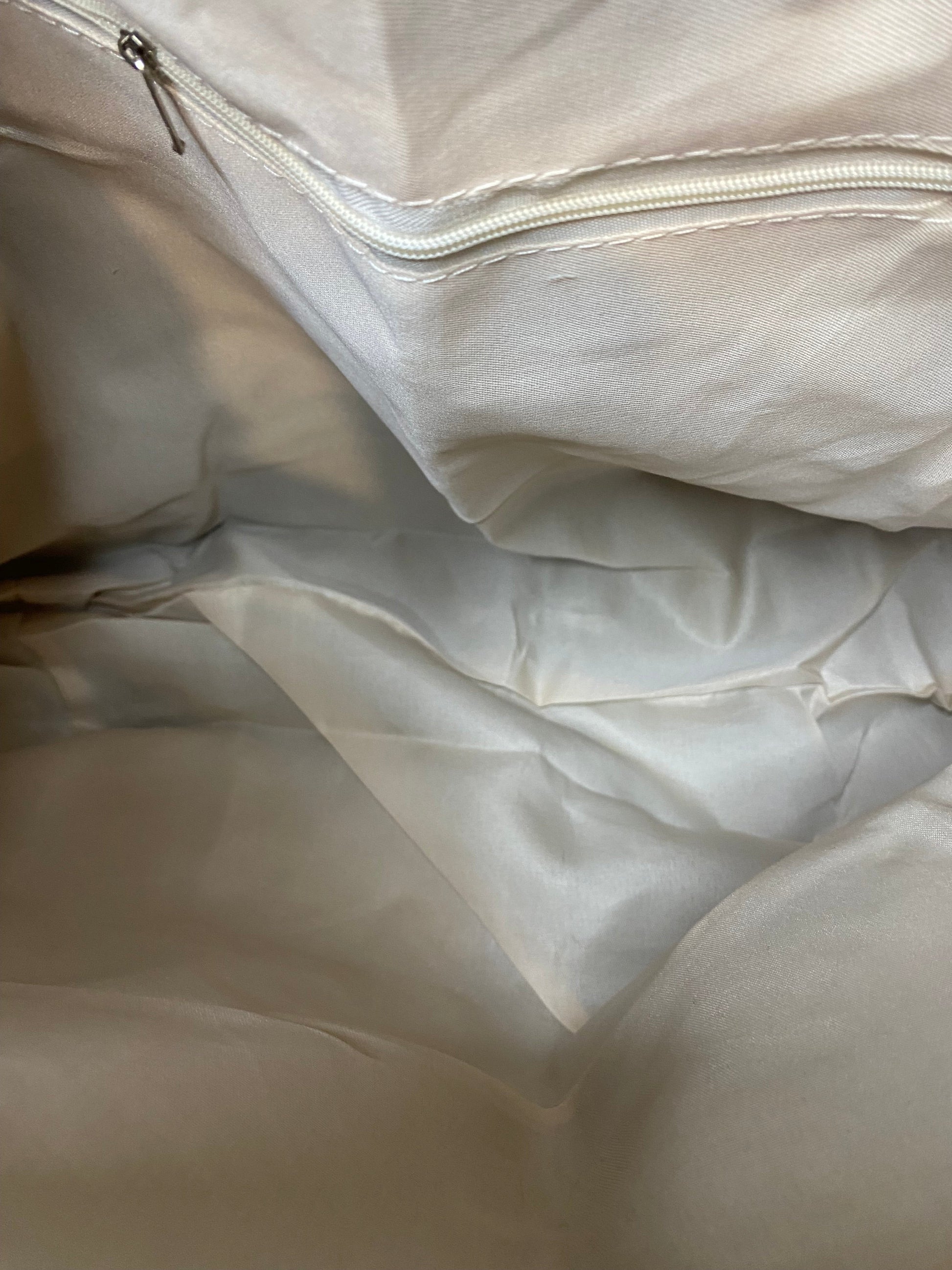 They feature 1 main compartment. As well as deep side zip pockets for securely storing items! Make it a purse, book bag, diaper bag, and so much more. Comes with single handle.