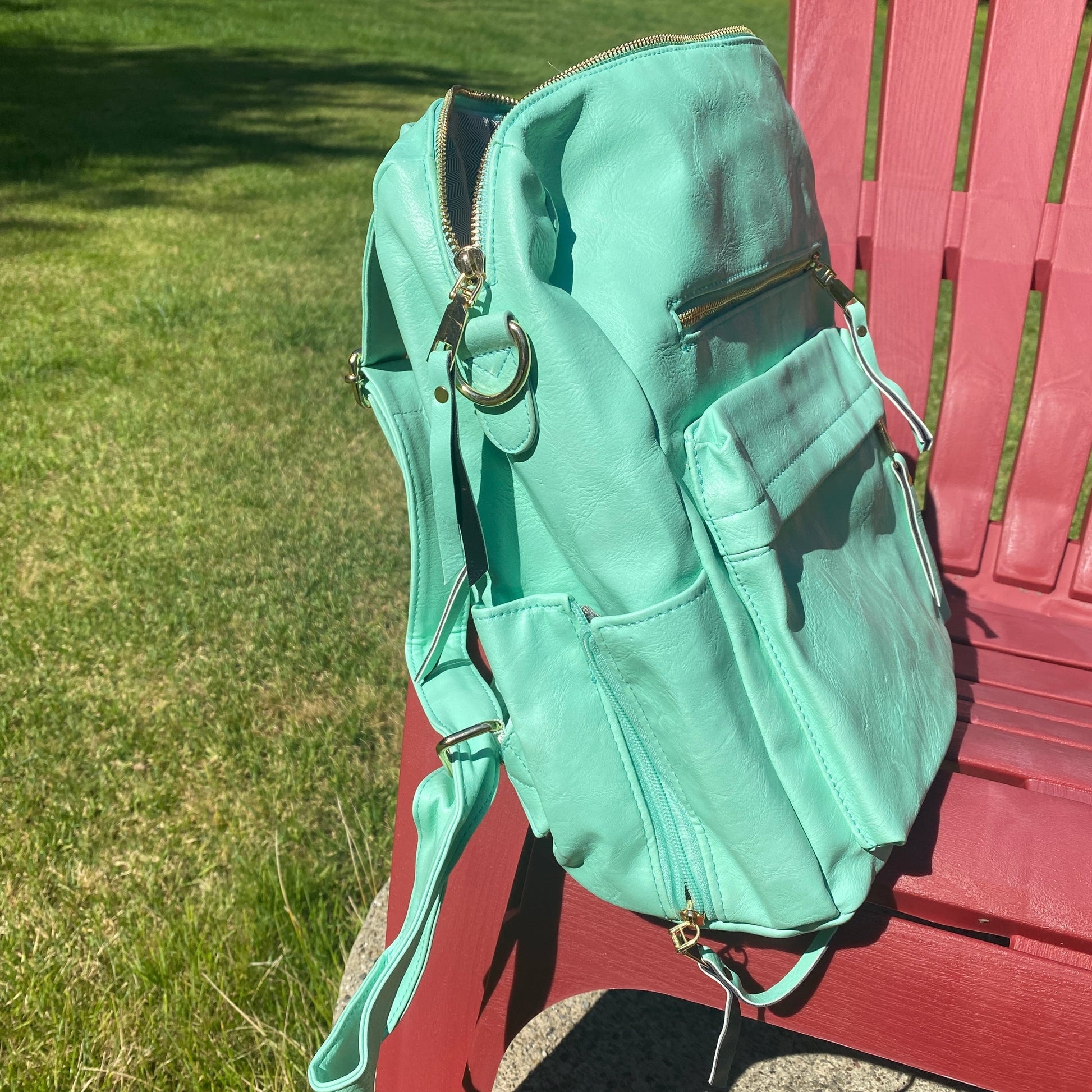 This gorgeous fashion backpack will be your new favorite! They feature 4 outer zip compartments for all the essentials! Make it a purse, bookbag, laptop bag, diaper bag, travel carry on, and so much more. Also comes with a reversible shoulder strap.