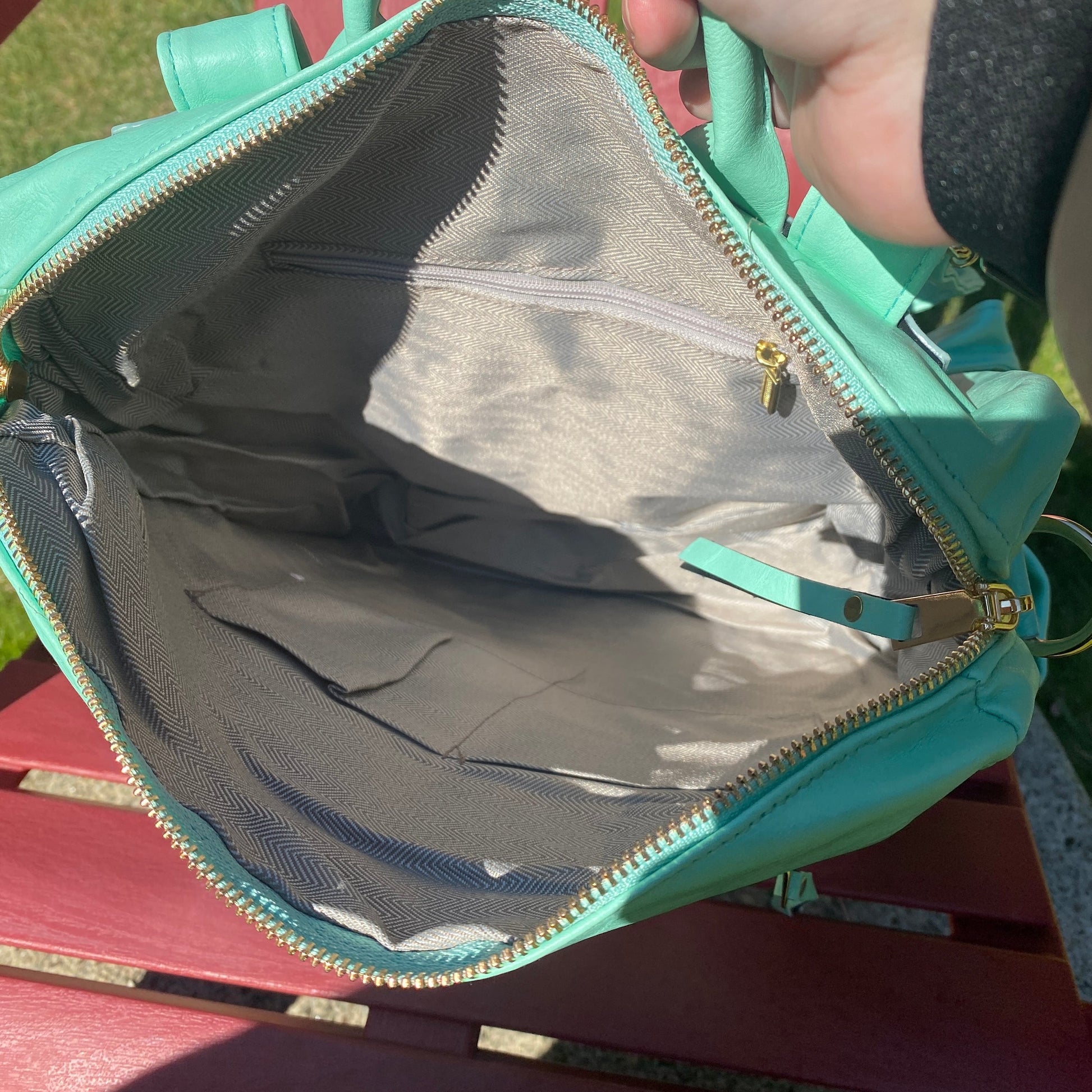 - One main compartment with duel zipper and lined fabric inner and one zip compartment inner