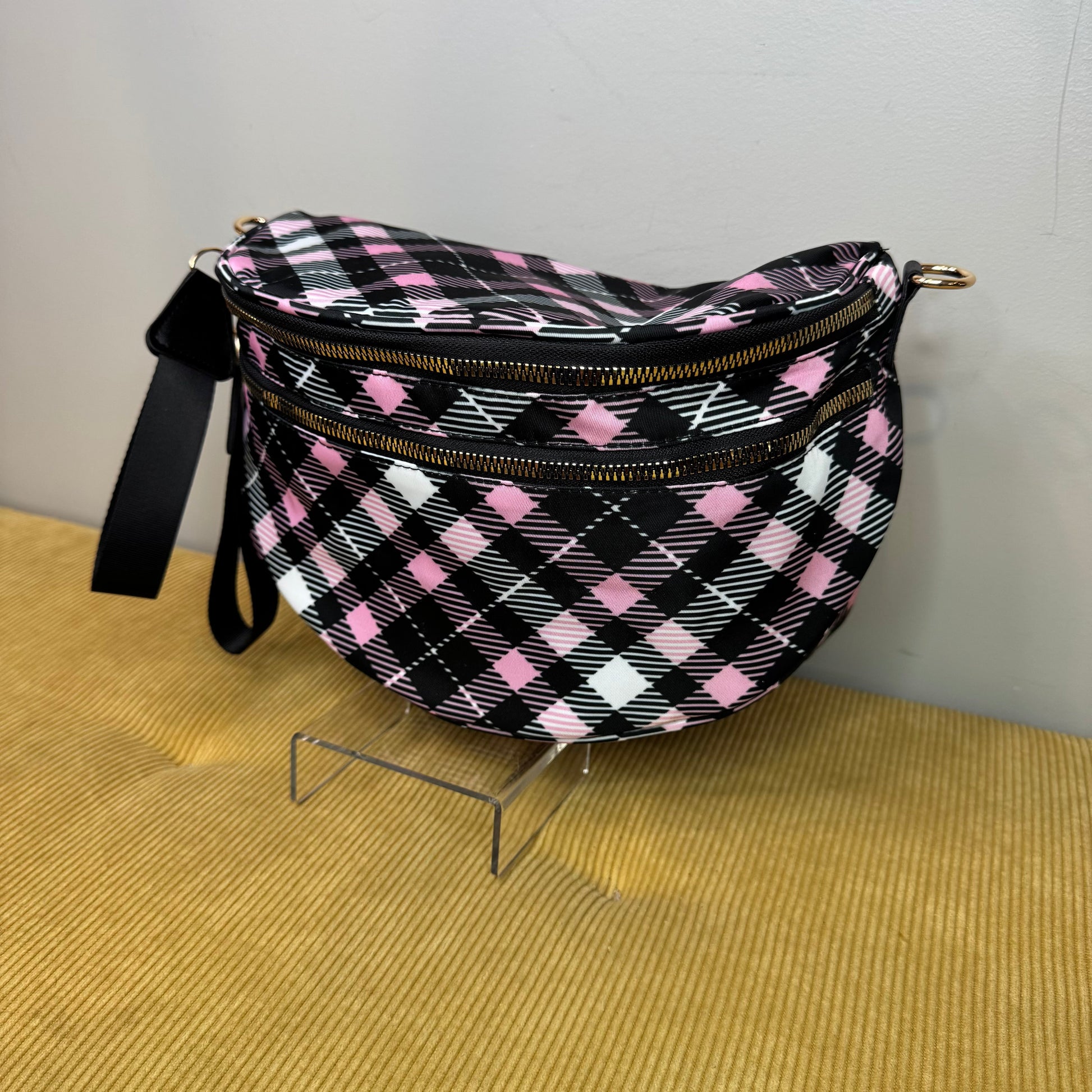 The Roni Nylon Crossbody - Black Pink Plaid